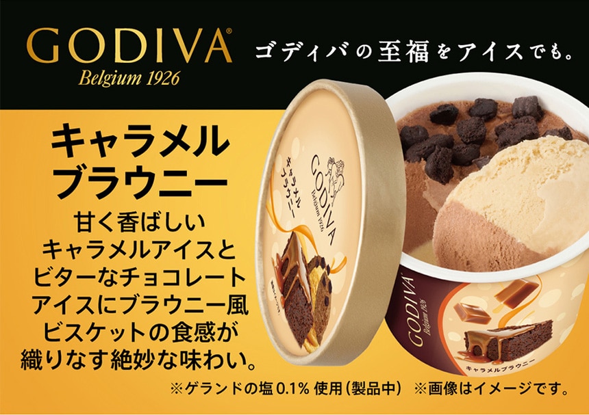 [冷凍]ゴディバ キャラメルブラウニー 90ml×4個 | ゲランドの塩のまろやかな塩味がアクセントのコク深い甘さが広がるキャラメルアイス。