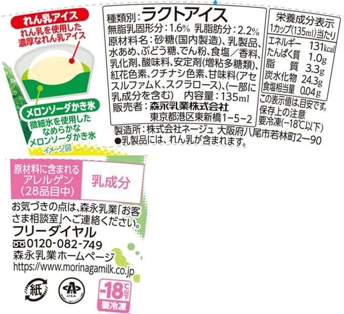 - [冷凍]森永乳業 森永れん乳アイス メロンソーダフロート 135ml×18個