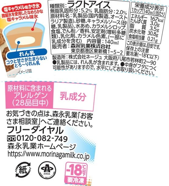 - [冷凍]森永乳業 森永れん乳氷 塩キャラメル 140ml×18個