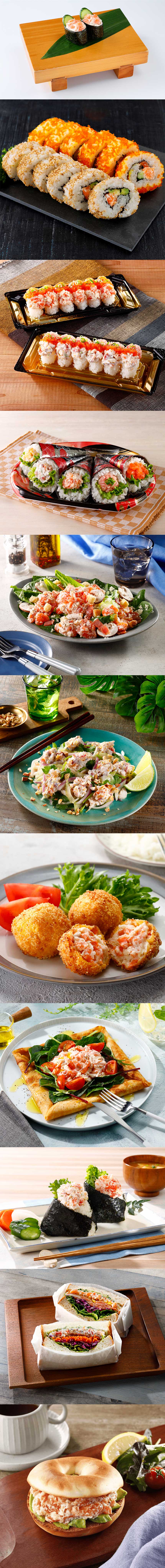 スモークの風味を付けたサーモンに北海道産クリームチーズを加えたサラダです。