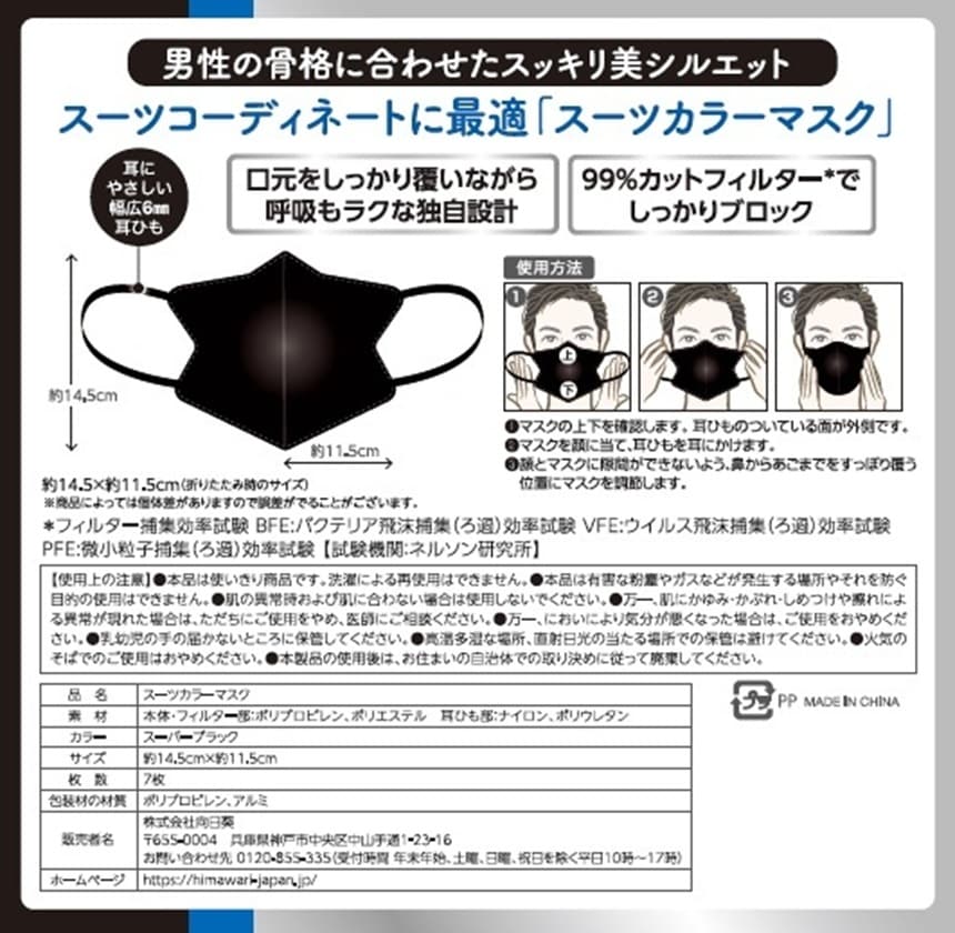 - ・スーツカラーマスク スーパーブラック 計70枚(7枚入×10個)