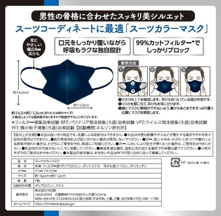 ・スーツカラーマスク ディープネイビー 計70枚(7枚入×10個) - 申込可能個数