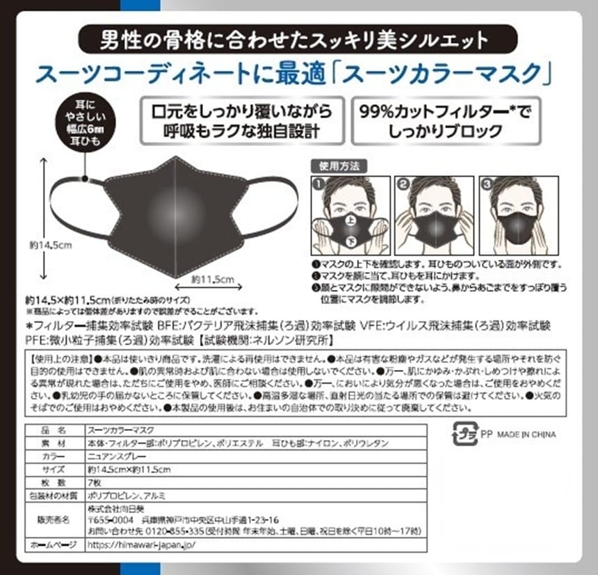 [3種計210枚]向日葵 スーツカラーマスク 3種セット(スーパーブラック / ニュアンスグレー / ディープネイビー)