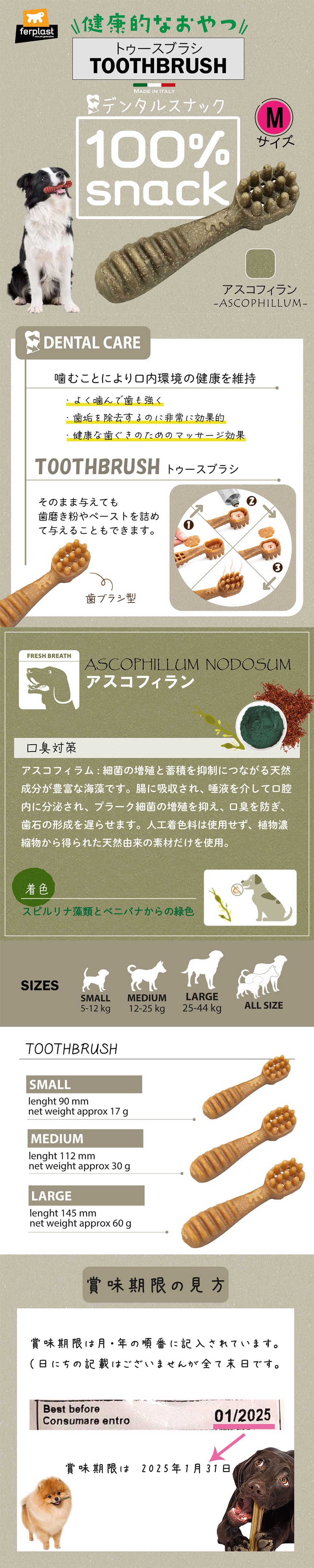 - ベジタリアンデンタルスナック トゥースブラシ アスコフィラン M 3ピース