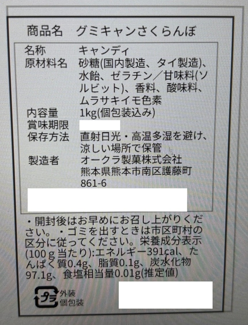 グミキャンさくらんぼ 1000g(個包装込み)