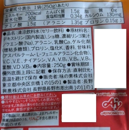 - ・「アミノバイタルⓇ」ゼリードリンク ガッツギアⓇ りんご味 250g×24個