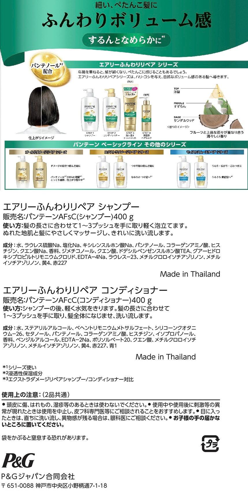 - パンテーン エアリーふんわりリペア ポンプ 2ステップ (シャンプー 400g+コンディショナー 400g)