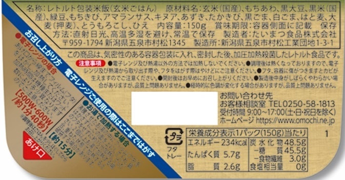 - ・国産玄米100%使用 金のいぶき 玄米と十五穀ごはん 150g×12食