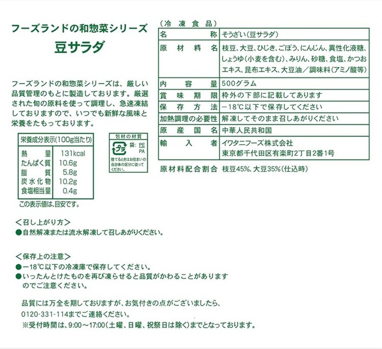 [10袋]イワタニフーズ 豆サラダ 500g | お好みの味付けでお召し上がりいただける冷凍サラダです。