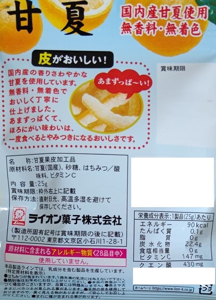 [20袋]ライオン菓子 そのまんま甘夏 25g | あまずっぱ~いおいしさ!