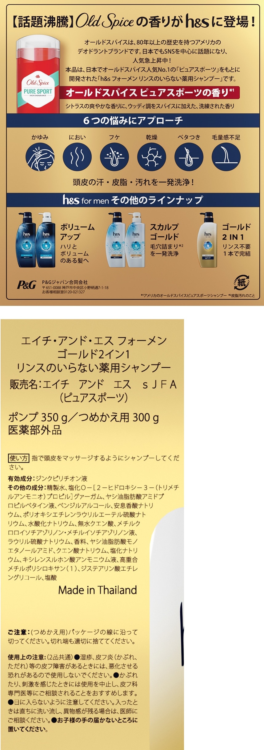 本品は、日本でオールドスパイス人気No.1の「ピュアスポーツ」をもとに開発された「h&sフォーメンリンスのいらない薬用シャンプー」です。