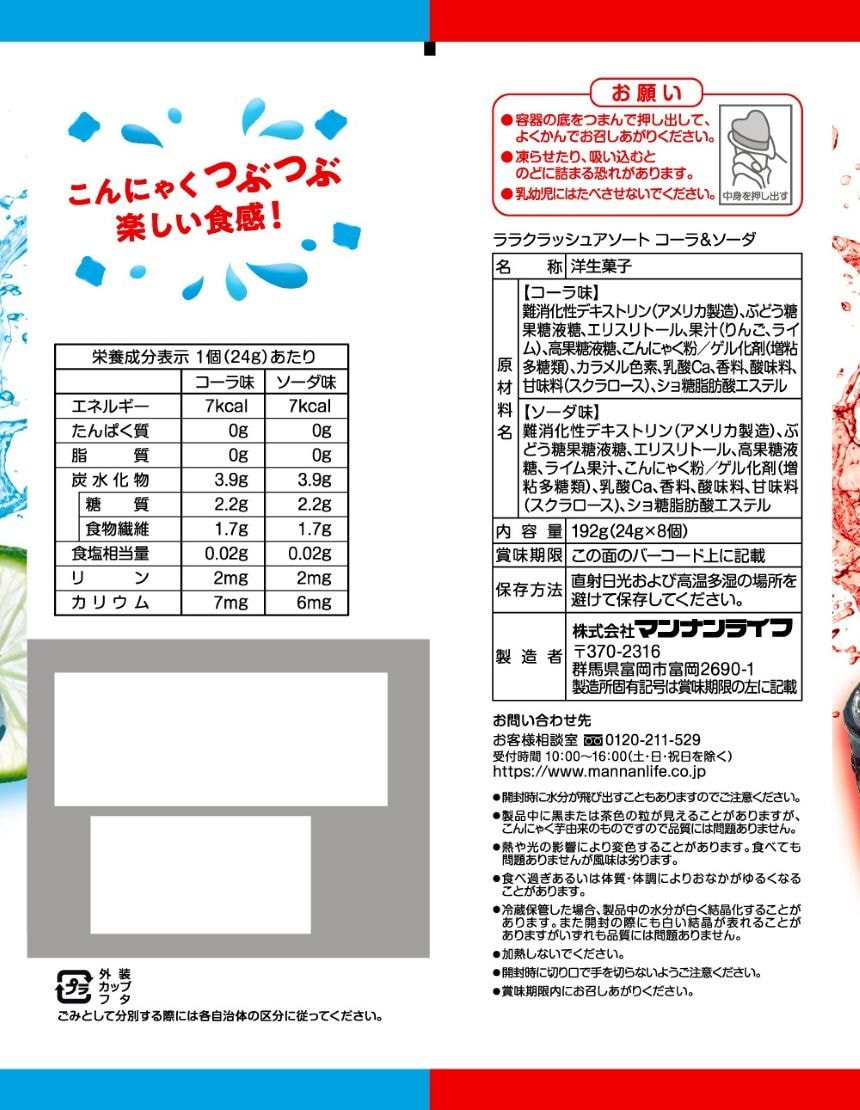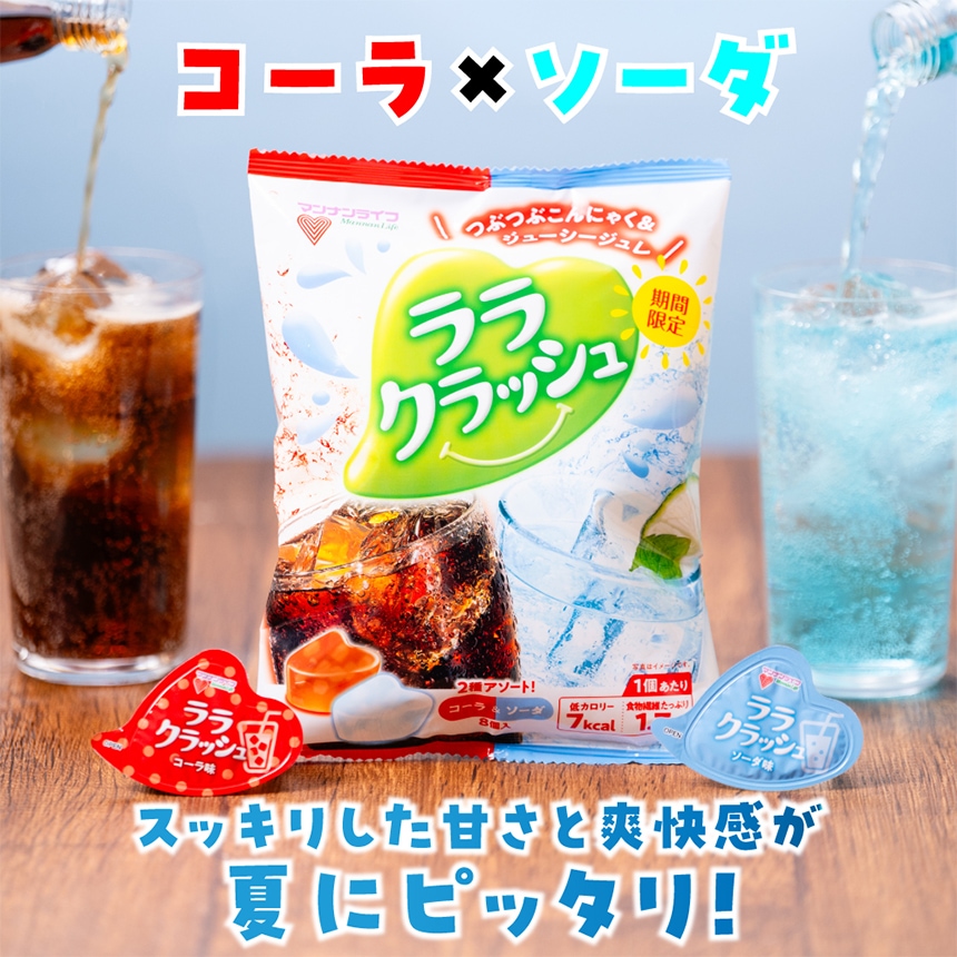 [12袋]マンナンライフ ララクラッシュ アソート コーラ&ソーダ 24g×8個 | つぶつぶこんにゃく&ジューシージュレ