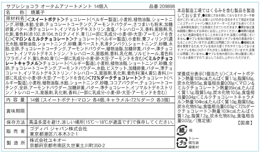 [3箱]ゴディバジャパン サブレショコラ オータムアソートメント 14個入