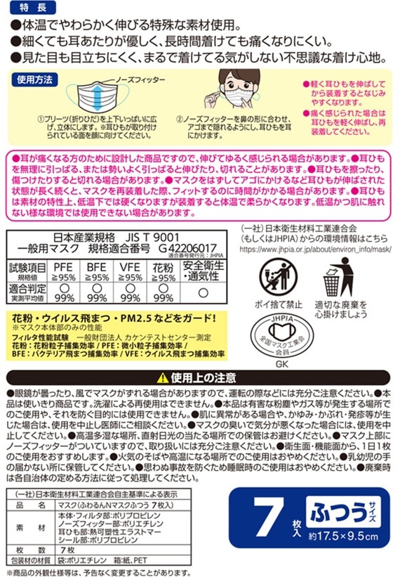 - ふわるんNマスクふつう7枚入 ( ベージュ / ライラック / ホワイト )
