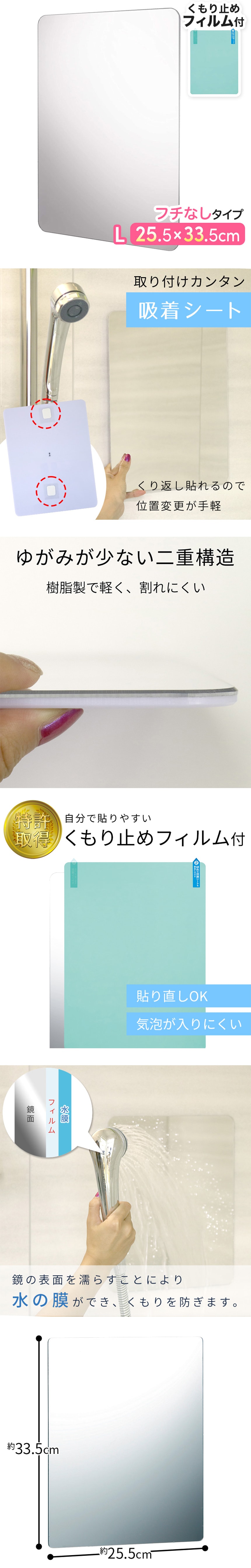 - お風呂ミラー L くもり止めフィルム付き(25.5×33.5...