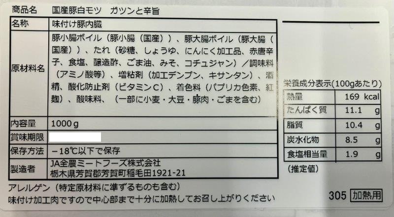 [計12000g]JA全農ミートフーズ 国産豚白モツ ガツンと辛旨 1000g×12袋 | ヒーヒー言っちゃう辛さの中にホルモンの旨さがあります。