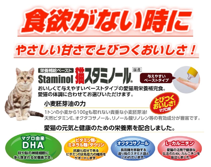 - 猫用栄養補給ペースト スタミノール 食欲がないときに まぐろ味 50g 国産