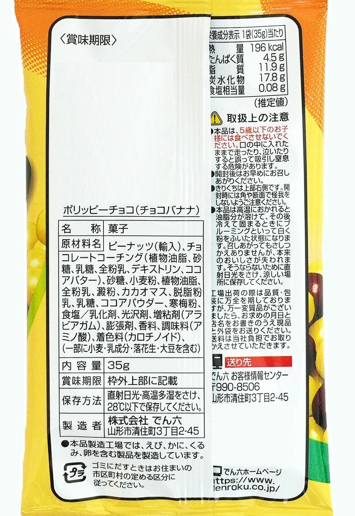 【日替わり数量限定】[100個]でん六 Eサイズ ポリッピー チョコバナナ 35g | ミルクチョコ味とバナナ味の2種ミックス