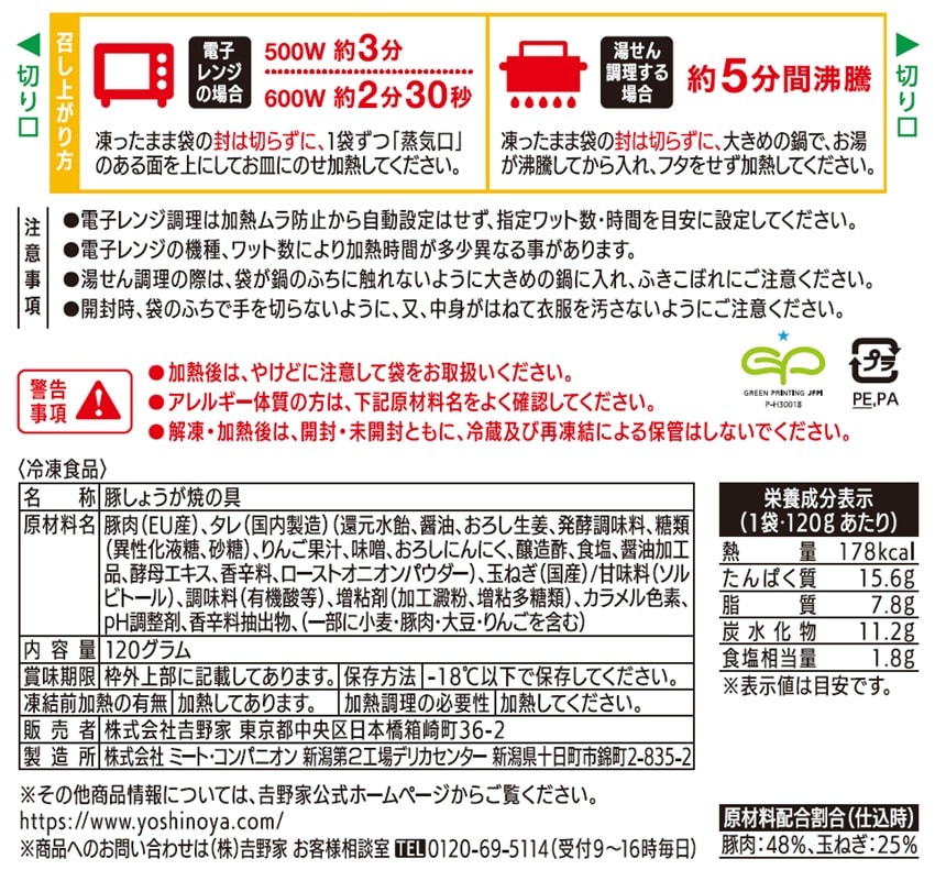 (3)冷凍商品オリジナルの吉野家の味がお楽しみいただけます。