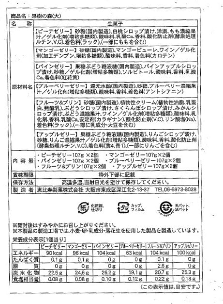 [2箱]恵比寿製菓 果樹の森(大) 12個入 | もぎたて果実のジューシーさをたいせつに、涼菓独特の爽やかな味覚を極めました。