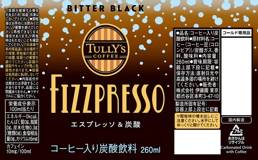 - TULLY’S COFFEE FIZZPRESSO BITTER BLACK ボトル缶 260ml