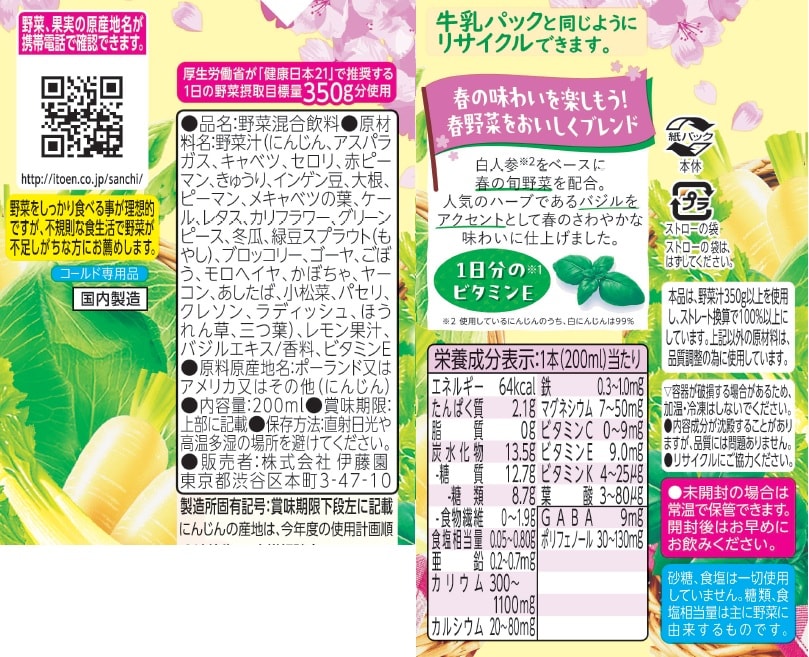 - 1日分の野菜 春の恵みとバジルmix 紙パック 200ml