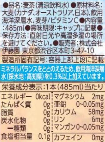 - 健康ミネラルむぎ茶 PET 485ml(冷凍兼用ボトル)