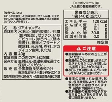 熊本県産ゆうべに苺のピューレを使用したグミです。