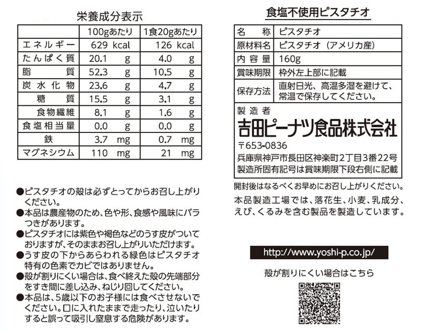 [3袋]吉田ピーナツ食品 徳用食塩不使用ピスタチオ 160g | おやつにはもちろん、ヘルシーなおつまみとしてもおすすめです。