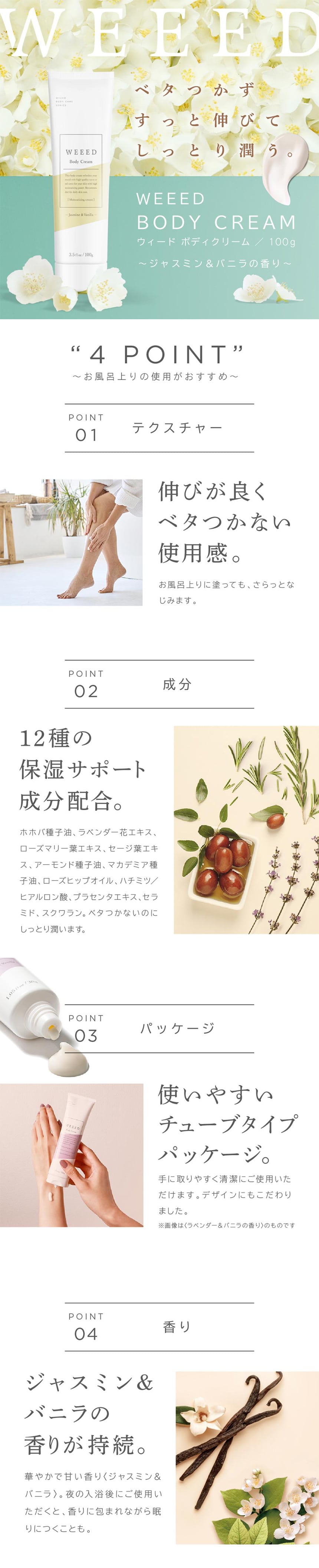 [18個]ECスタジオ WEEED ボディクリーム (ジャスミン&バニラ) 100g | ベタつかずすっと伸びてしっとり潤う