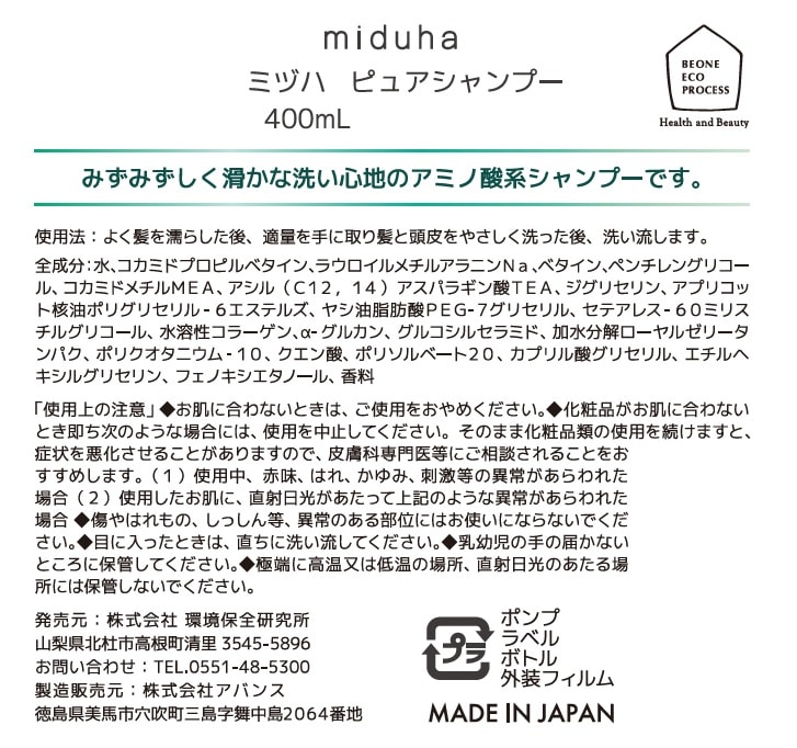 ・ミヅハピュアシャンプー詰替えパウチ 400mL