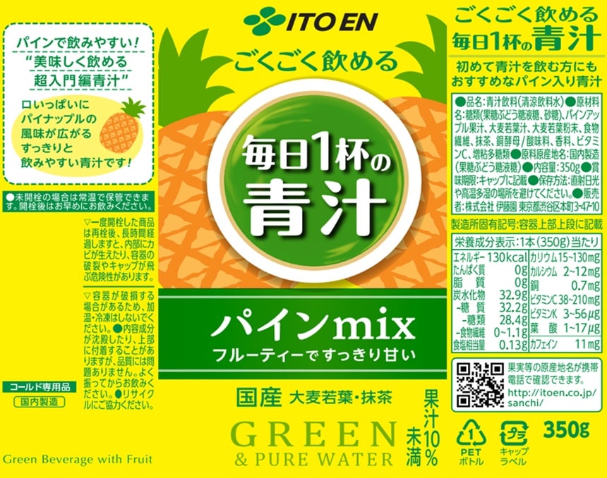 - ごくごく飲める 毎日1杯の青汁パインmix PET 350g