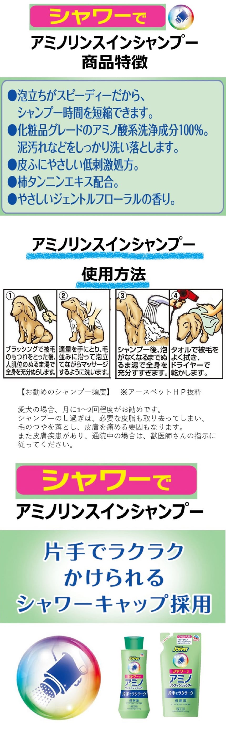 [2種計22個]アース・ペット JOYPET(ジョイペット) シャワーでアミノリンスインシャンプー ジェントルフローラルの香り 本体 350mL / 詰替用 280mL | 皮ふにやさしい低刺激処方。