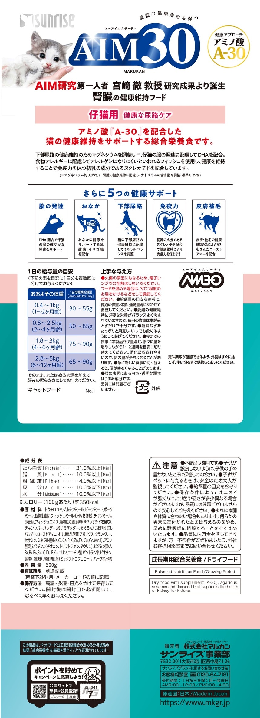[2個]マルカン・サンライズ事業部 AIM30 仔猫用 健康な尿路ケア フィッシュ 600g | 愛猫の健康寿命を保つ!