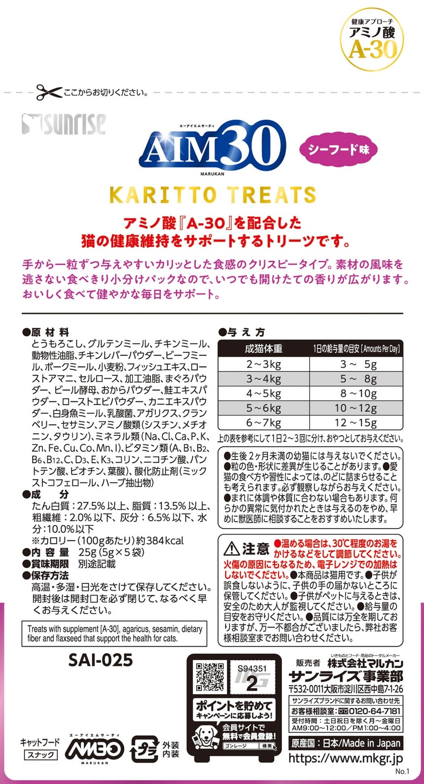 [30個]マルカン サンライズ事業部 AIM30 カリッとトリーツ シーフード味 5g×5袋 | 猫の健康維持をサポート!