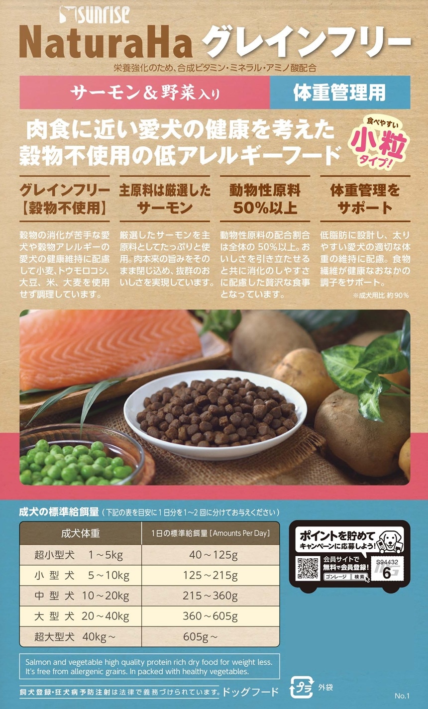 - ナチュラハ グレインフリー サーモン&野菜入り 体重管理用 ...