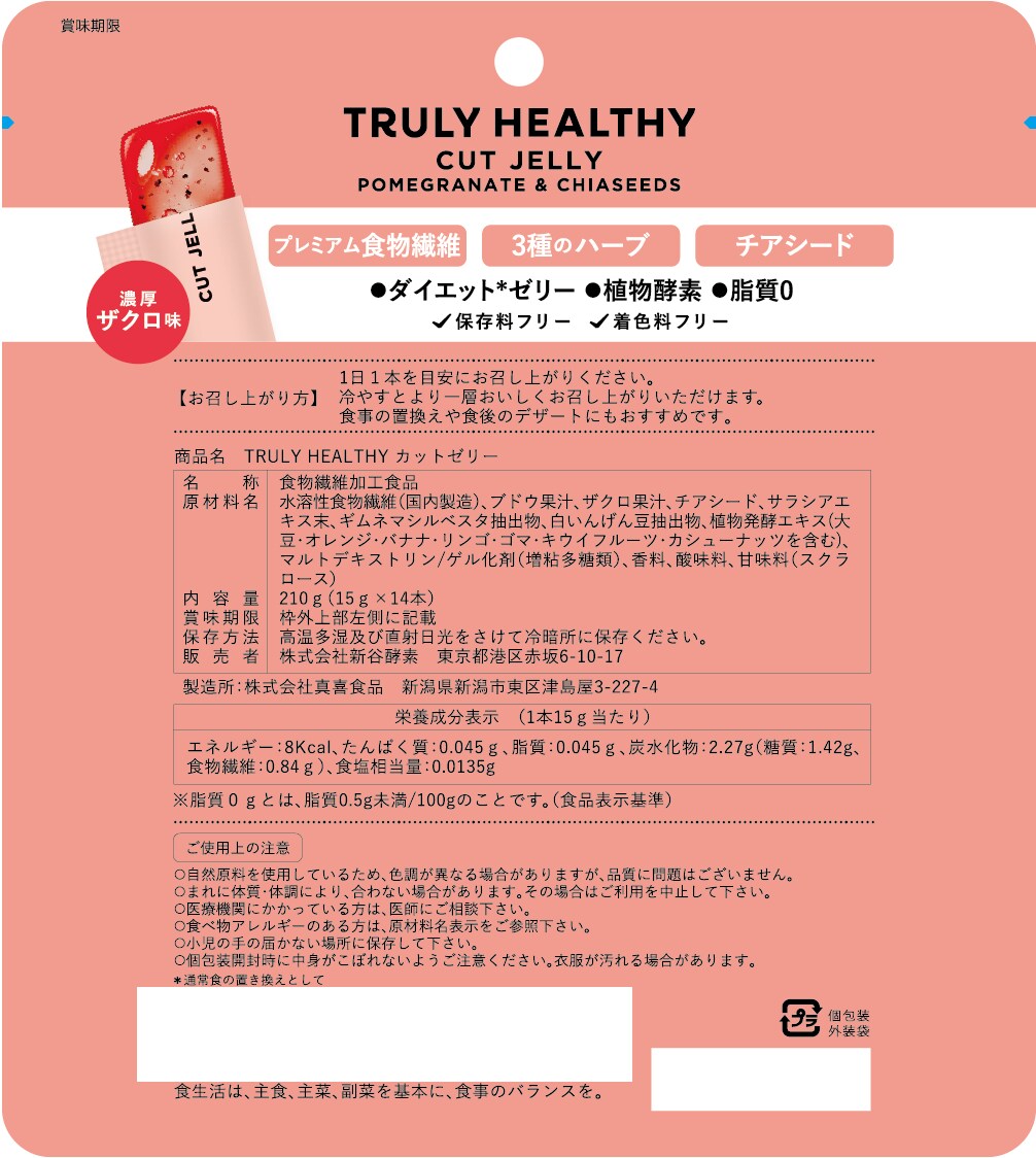 - ・トゥルーリーヘルシー カットゼリー 濃厚ザクロ味 (15g×14本入)×1個