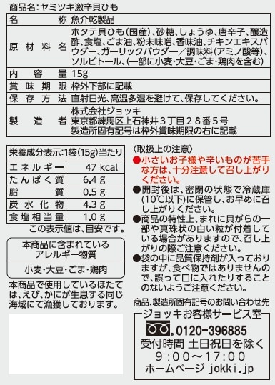 [40個]ジョッキ ヤミツキ激辛貝ひも 15g | 味噌味をベースとした調味料と唐辛子の刺激的な辛口味。