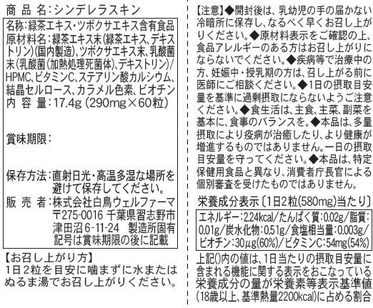 [24個]白鳥ウェルファーマ シンデレラスキン 17.4g(290mg×60粒) | 体の内側から美しい肌を目指すサプリメント