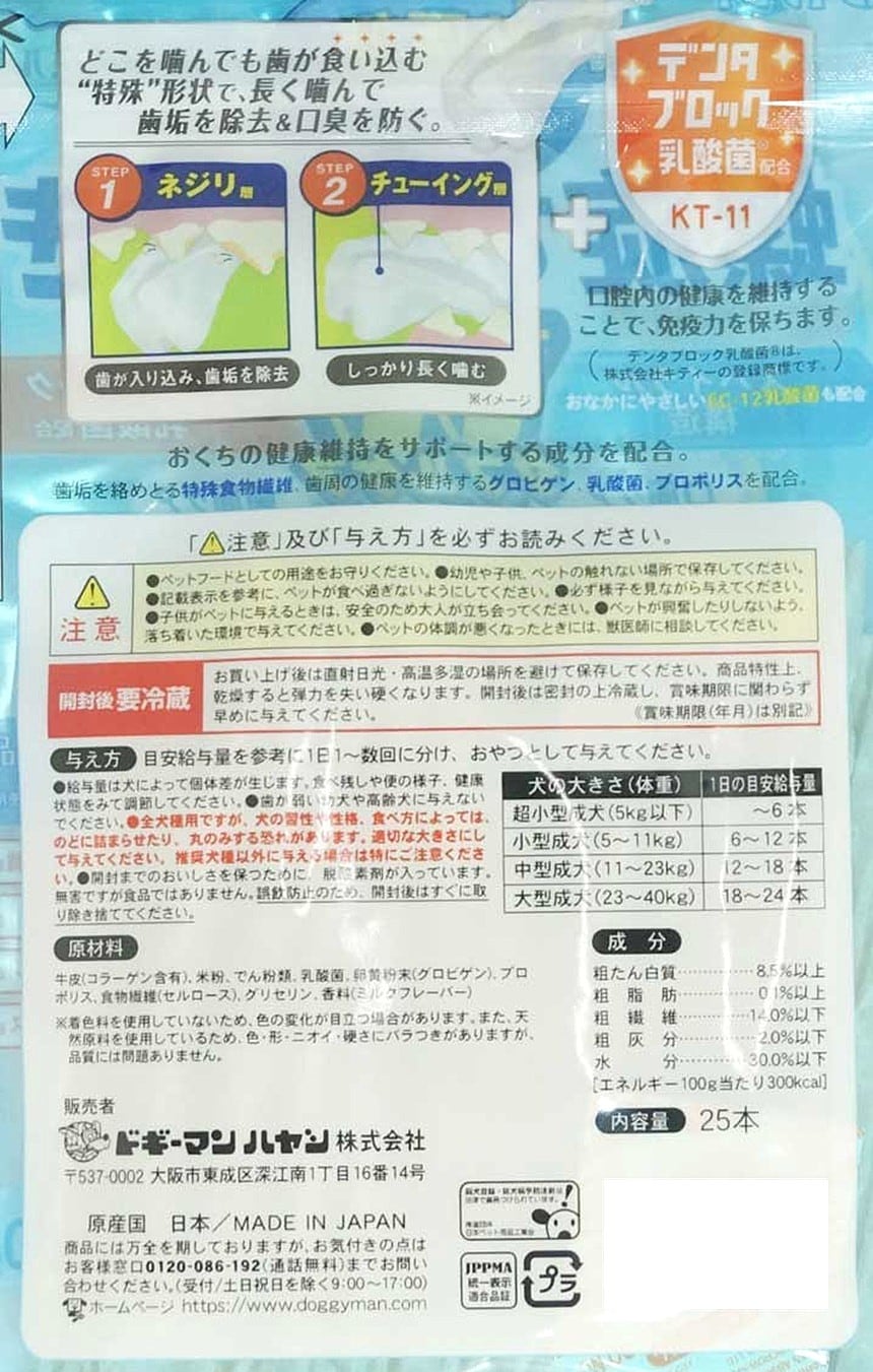 [24個]ドギーマンハヤシ ホワイデント 螺旋で歯みがき Wケア SS 25本入 | 大切な歯の健康のために!