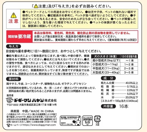 - 無添加良品 ガムのささみ巻ジャーキー 16本(8本×2袋)
