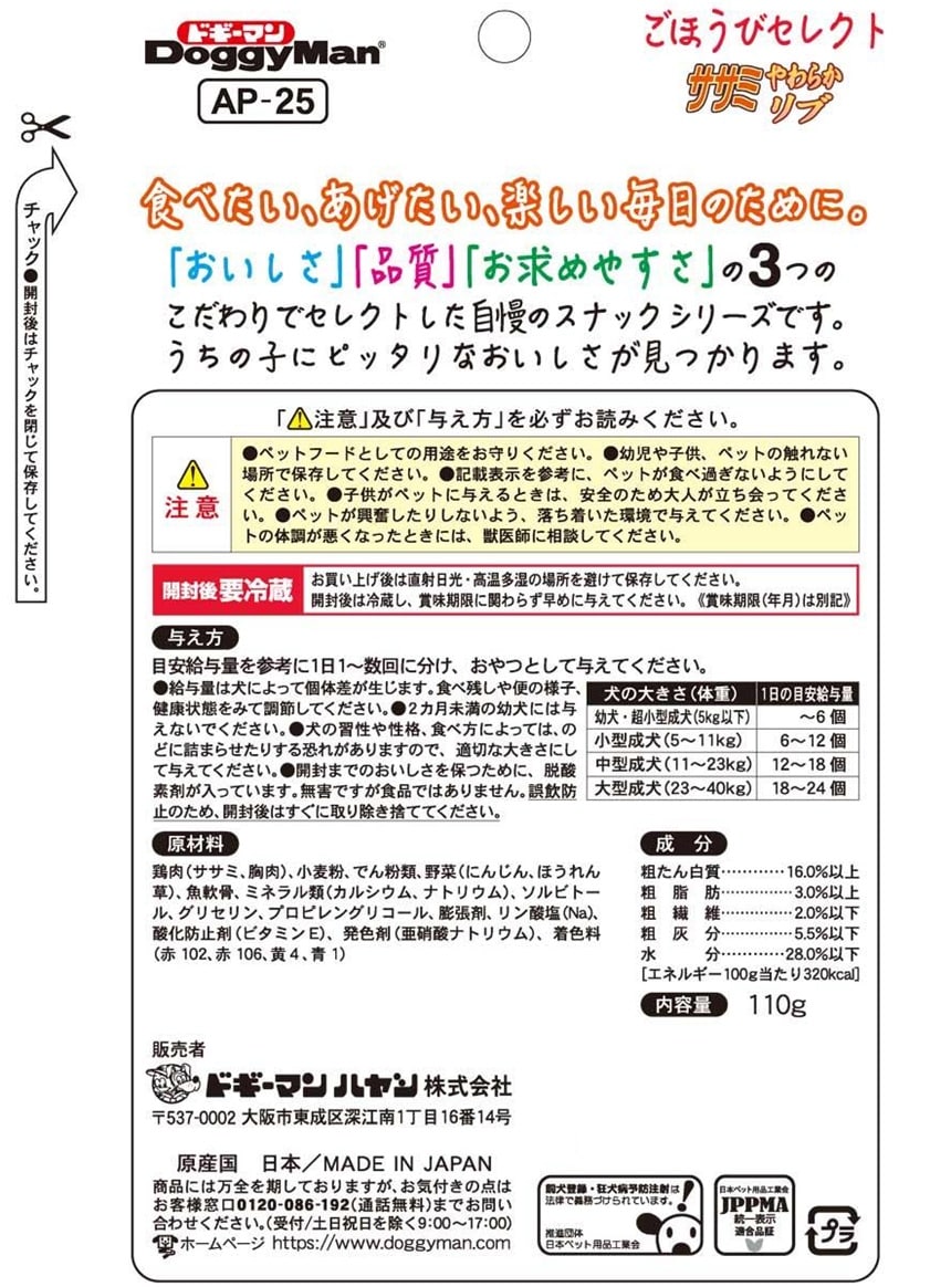 [9個]ドギーマンハヤシ ごほうびセレクト ササミやわらかリブ 110g | 食べたい、あげたい、楽しい毎日のために!