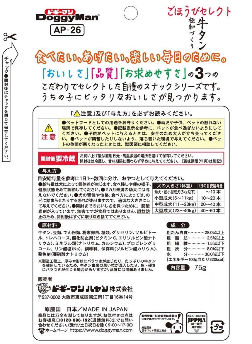 [9個]ドギーマンハヤシ ごほうびセレクト 牛タン極細づくり 75g | 食べたい、あげたい、楽しい毎日のために!