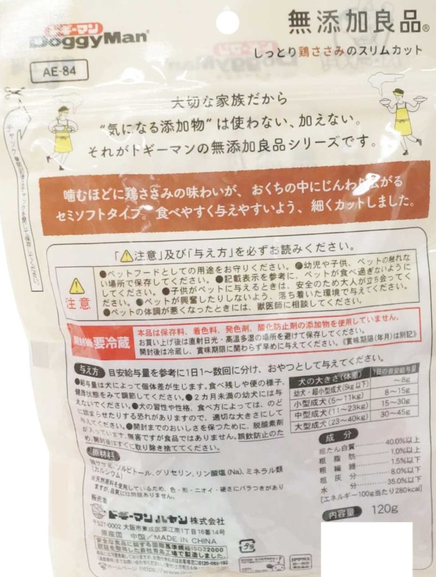 - 無添加良品 しっとり鶏ささみのスリムカット 120g