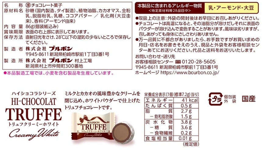 [12袋]ブルボン トリュフクリーミーホワイト 86g | マイルドなミルクの味わい