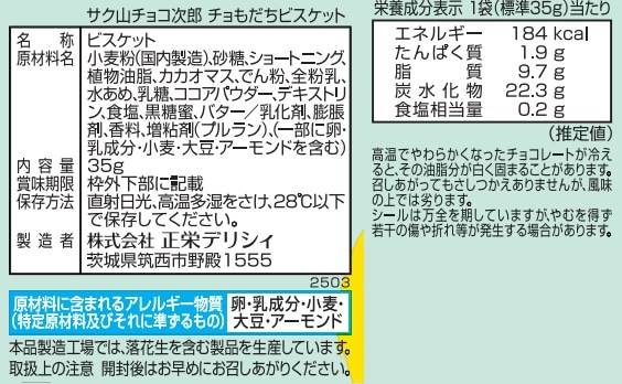正栄デリシィ サク山チョコ次郎 チョもだちビスケット 35g