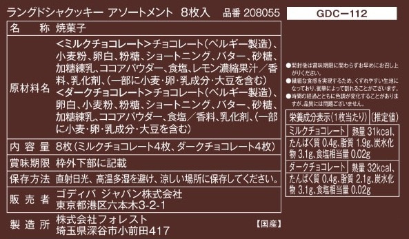 [8箱]ゴディバジャパン ラングドシャクッキー アソートメント 8枚入 | チョコレートの味わいを楽しんでいただくことを大切にしたクッキー。