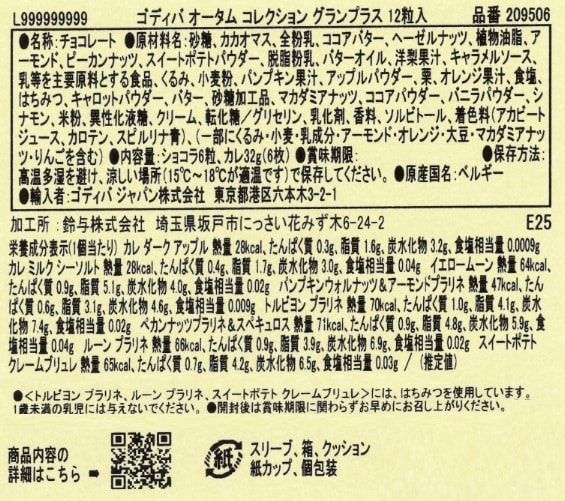 - ゴディバ オータム コレクション グランプラス 12粒入