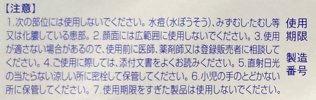 皮ふ(患部):みずむし・たむし等の白癬症,にきび,化膿症状,持続的な刺激感