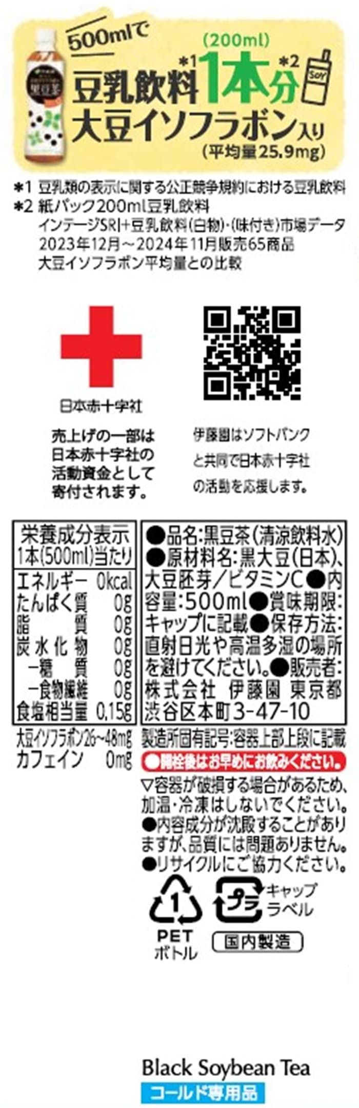 [48本]伊藤園 おいしく大豆イソフラボン 黒豆茶 PET 500ml | ”かりっ”と香ばしく、やさしい甘さの黒豆茶